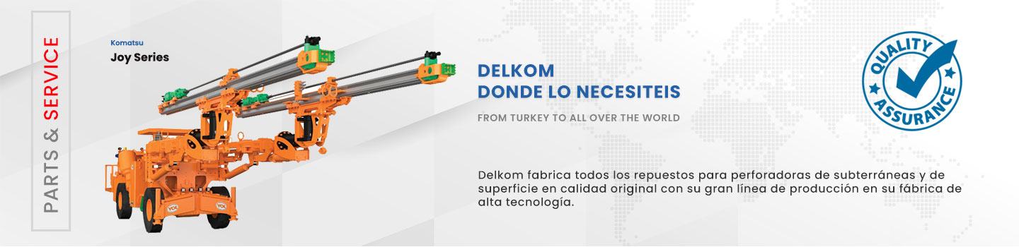 Ofrece una amplia gama de repuestos equivalentes a las marcas Ingersoll Rand, Atlas Copco, Epiroc, Mine master, Montabert, Komatsu Y Furukawa así como repuestos de equipos de perforación, repuestos de martillo, motores y bombas hidráulicas, compresores, filtros, transmisiones,cajas de engranajes, componentes eléctricos, motores diesel y equipos de tren de rodaje de estas marcas. Fabricante de repuestos duraderos y de alto rendimiento, Delkom sigue realizando envíos diarios a todo el mundo. Delkom mantiene aproximadamente 15.000 productos diferentes en stock y proporciona servicio de mantenimiento y reparación con su personal técnico bien capacitado si así lo solicitan sus clientes.