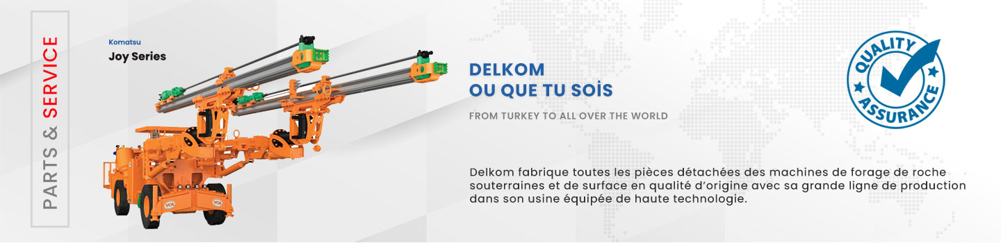 Il propose une gamme complète de pièces détachées équivalentes à celles d’Ingersoll Rand, Atlas Copco, Epiroc, Tamrock, Sandvik, Mine master, Montabert, Komatsu et Furukawa,ainsi que des pièces détachées de forage, des moteurs et pompes hydrauliques, des compresseurs, des filtres, des boîtes de vitesses, des réducteurs de transmission, des moteurs diesel, des unités de chenilles et des composants électriques. Fabriquant des pièces de rechange durables et performantes, Delkom continue d’expédier quotidiennement dans le monde entier.