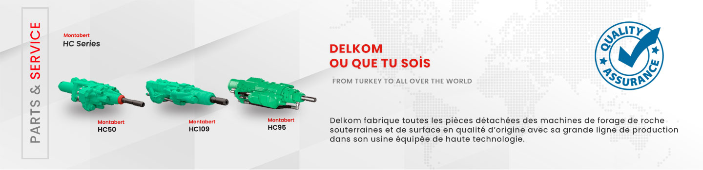 Il propose une gamme complète de pièces détachées équivalentes à celles d’Ingersoll Rand, Atlas Copco, Epiroc, Tamrock, Sandvik, Mine master, Montabert, Komatsu et Furukawa,ainsi que des pièces détachées de forage, des moteurs et pompes hydrauliques, des compresseurs, des filtres, des boîtes de vitesses, des réducteurs de transmission, des moteurs diesel, des unités de chenilles et des composants électriques. Fabriquant des pièces de rechange durables et performantes, Delkom continue d’expédier quotidiennement dans le monde entier.